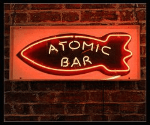 Atomic Bar Neon Sign, 330mm x 780mm. Hire Sign.