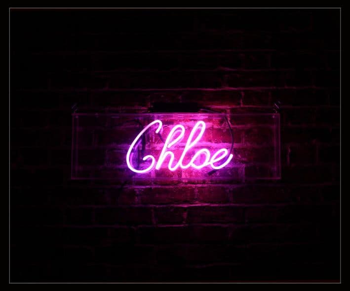Chloe Neon Sign, 230mm x 475mm. Hire Sign.