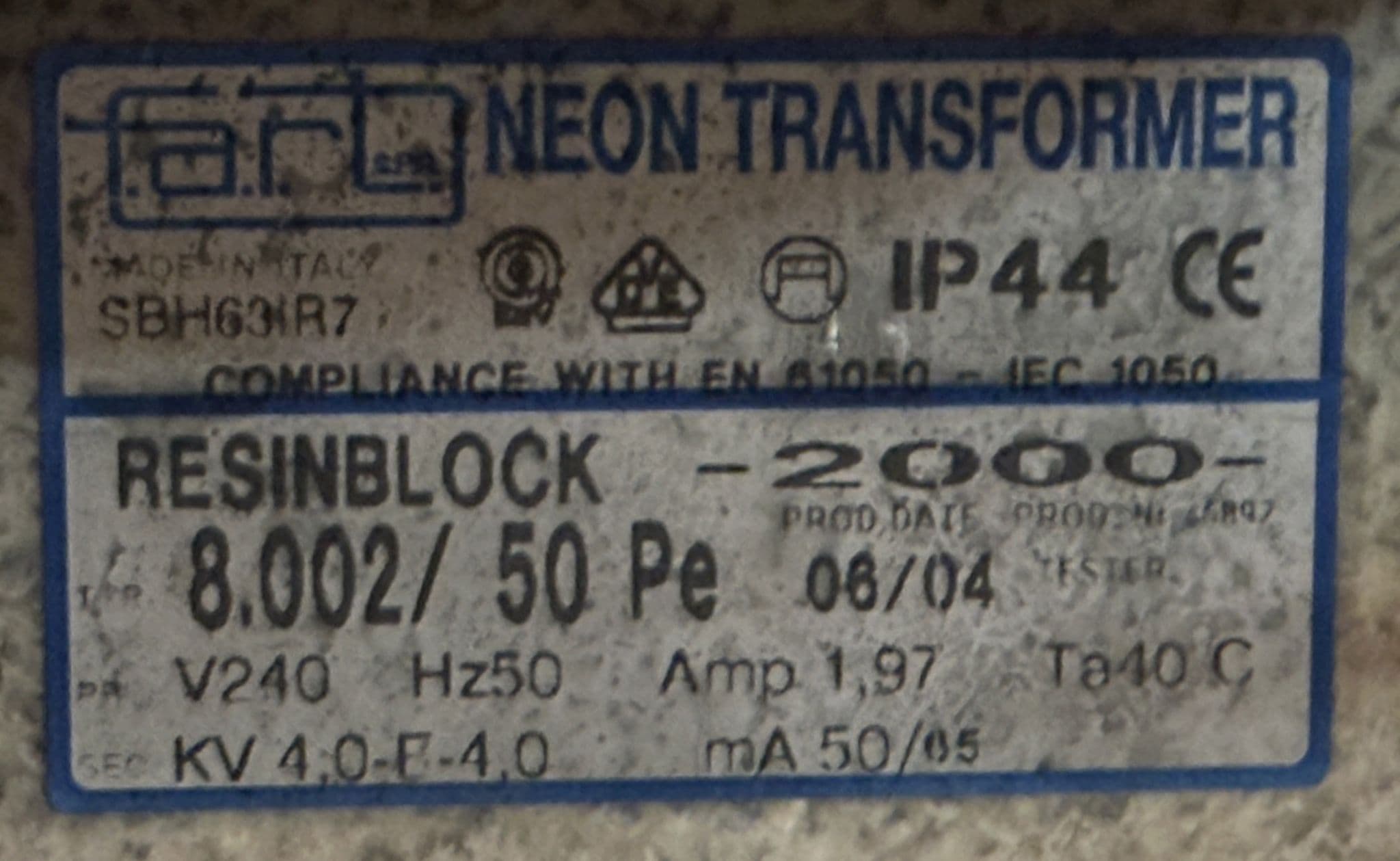 Voltage, Secondary output: 4kv E 4kv 50-65ma (8,000v 50-65Ma).