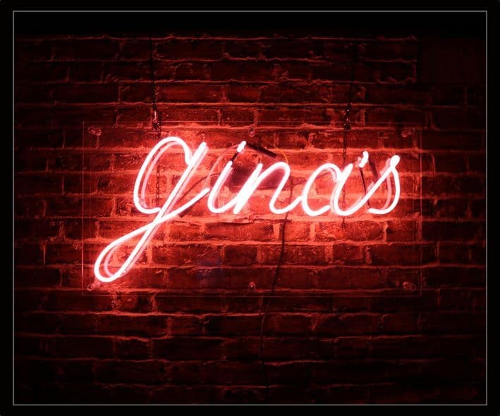 GINAS Neon Sign, 510mm x 1000mm. Hire Sign.