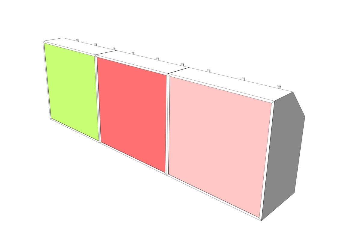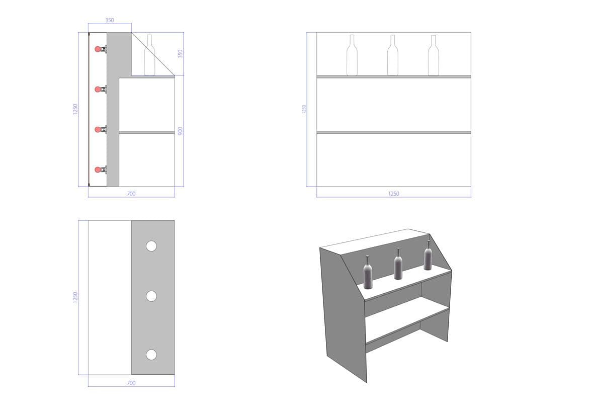 - 3 Different sizes available : H 1250mm x D 700mm x L 1250mm, H 1250mm x D 700mm x L 2500mm, H 1250mm x D 700mm x L 3750mm. Other sizes available on request.