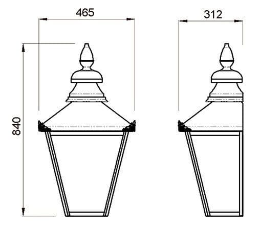 The Sutton Half Lantern is a Square, Victorian period lantern for situations needing a traditional lantern. Many Pubs, Restaurants, Municipal Buildings and Public Venues have already benefited from having this product in place.